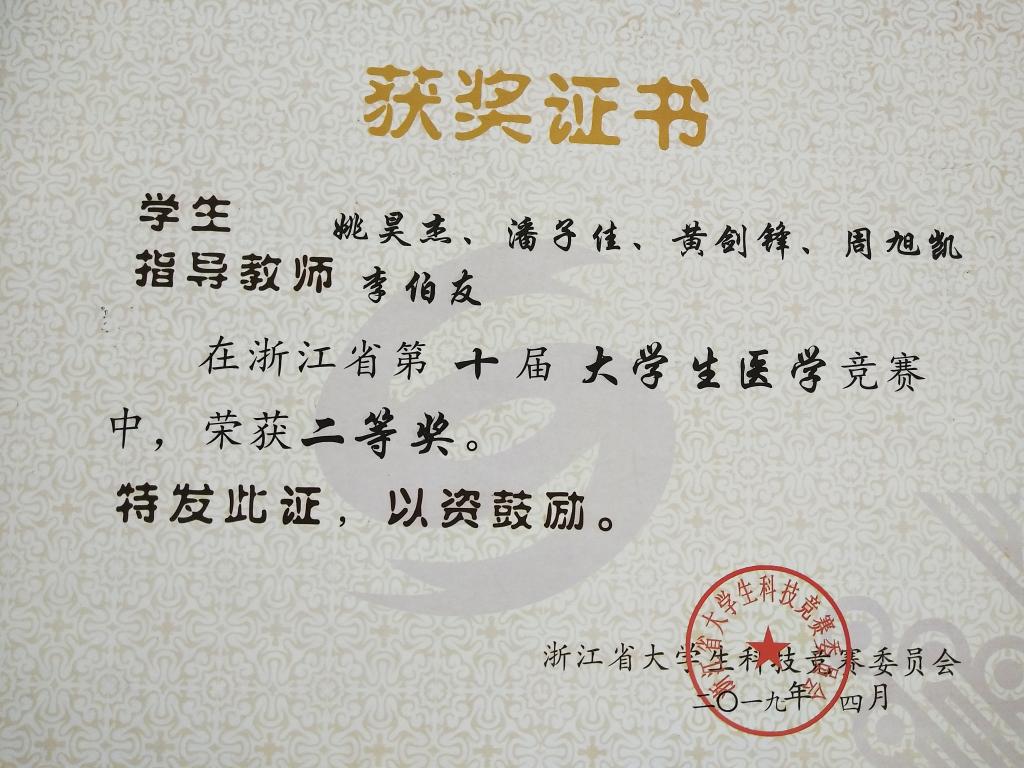 浙江省第十届大学生医学竞赛二等奖--姚昊杰等